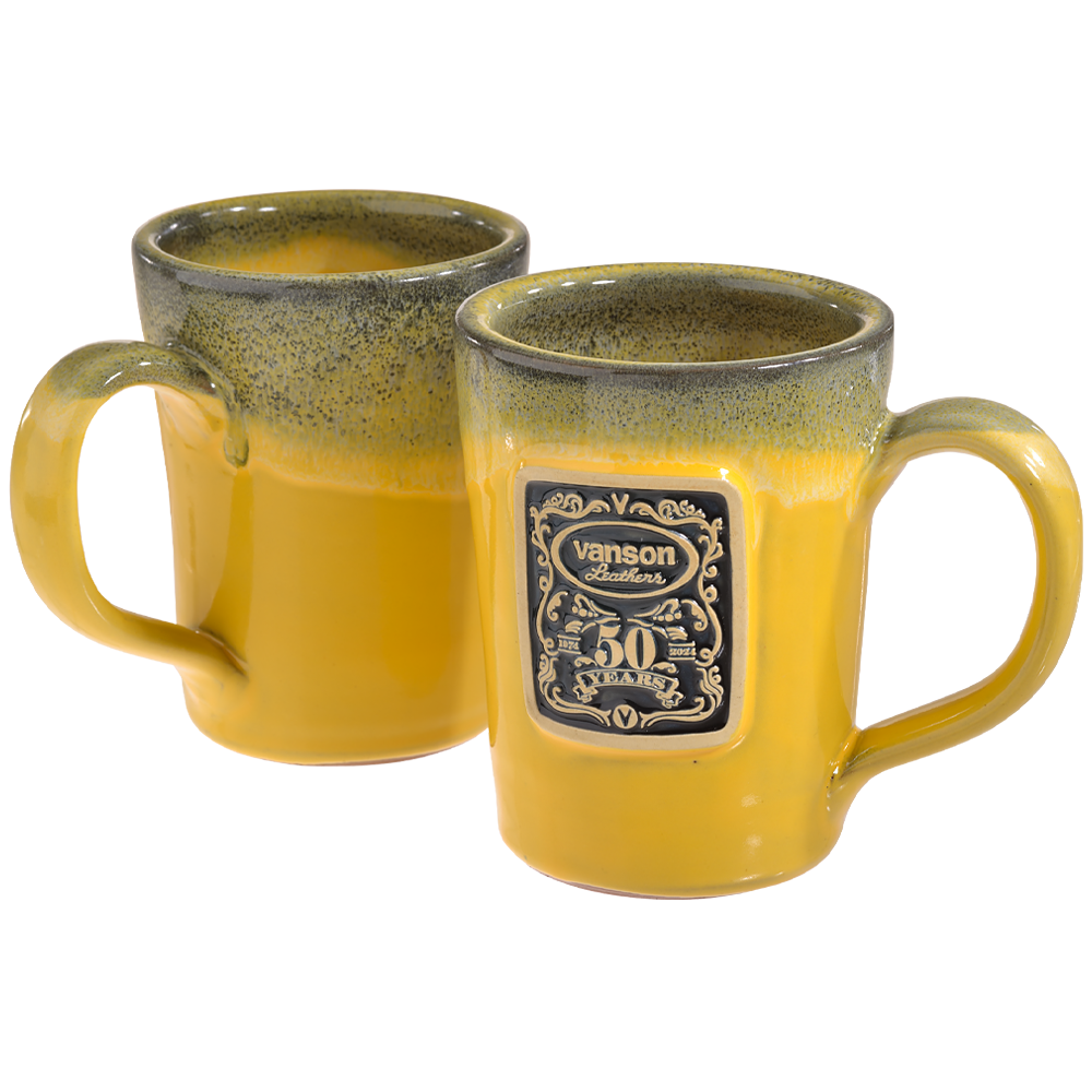 So when it came time to mark this special anniversary we looked for a benchmark company that shares our values. We wanted a Vanson of Mugs to make our special edition. In Deneen Pottery we found one: “For nearly 5 decades, we've created hand thrown mugs”. “Each mug is hand-thrown” and each Vanson Deneen Mug is individually numbered. Just like our jackets. Can't get better than that!