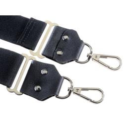 Fit (lengths) and elastic tension are controlled by sliding the adjuster-ovals up and down the front legs, The elastic we use is 1.5 inches wide for optimal strength and comfort over the shoulders.