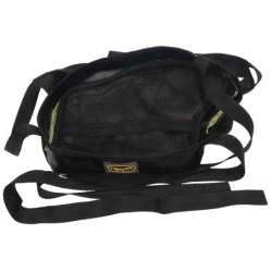 tire. Held on with 4 straps + 4 D-Rings. Mesh bag holds absorbent