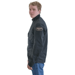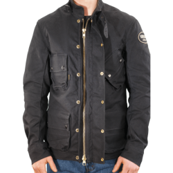 Made from durable Army 1010 Black wax cotton canvas, this motorcycle riding jacket delivers reliable wind and rain resistance while maintaining breathable comfort for long rides.