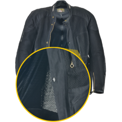 On the outside we have a chest pocket on the left, which could take a cellphone, and two combination hand/cargo pockets, while in the lining there are two large zippered pockets. What makes this jacket really versatile and modular is the provision for zipping in our Streamliner Vest - ideal for those hot days that turn into chilly evenings, or for transitional-season riding.