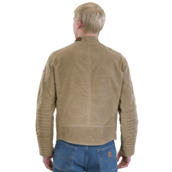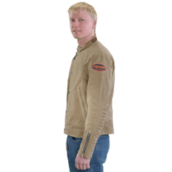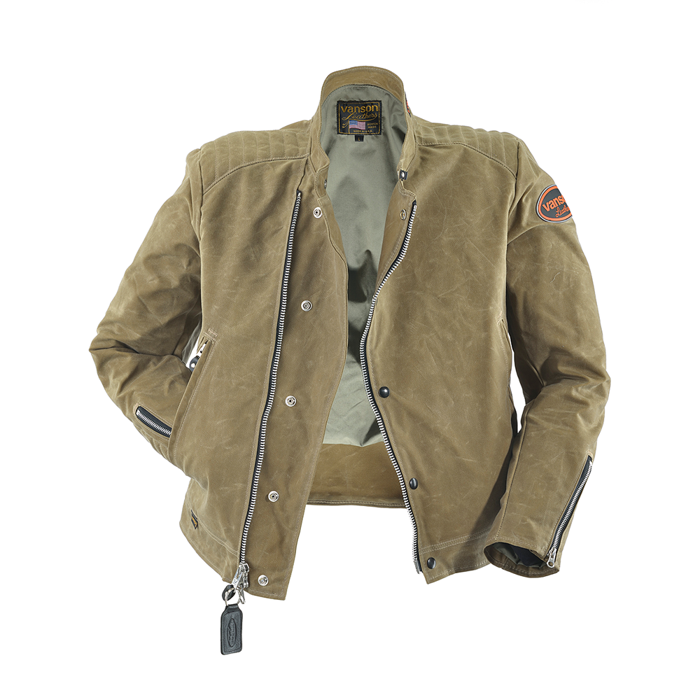The Vanson TROPHY JACKET is a blend of a traditional café racer styled jacket and durable, weather-resistant Army 1010 field tan wax cotton.