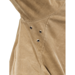 The slant front is generously cut with a substantial wind sealing overlap with both a two-way front zipper and snaps. Leave it slightly open and loose for cooling airflow, or zip and snap it up tight to keep warm. The sleeves also have zip-close wrists, and all the zippers are equipped with riveted leather tabs.