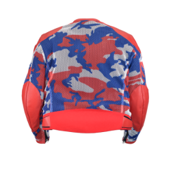 The Vanson VX5 Cyclone Mesh Jacket is a bold, performance-driven motorcycle jacket built for riders who want maximum airflow without sacrificing protection or classic Vanson durability. Crafted from striking red-white-blue camo mesh, this jacket delivers standout style combined with serious riding function.