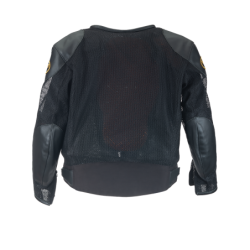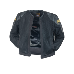 The Vanson VX5 Cyclone Mesh Jacket is a rugged, ventilated motorcycle jacket constructed from black heavy-duty vent mesh for maximum airflow on warm rides. Designed with a mesh vented body and multiple pockets, it offers comfort and practicality without sacrificing protection. The jacket is armor-ready at the elbows and shoulders and features a backpad-compatible design for optional rear protection. Reinforced with competition double leather at the shoulders and elbows, it balances durability with breathable performance. Additional premium touches include a beaded leather collar, zip-front closure, ventilated mesh lining, and two zip-close rear pockets. A unique ID key fob embossed with the garment’s unit number adds functional detail, while the low-bulk beaded sleeve ends at the wrists ensure a sleek, comfortable fit.