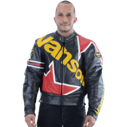 A 1960's-inspired supergraphic Vanson logo adds twist and shout to the classic flat-track symbol. And just like the label on a certain quality brand of Scotch, it'll annoy those who like everything in the straight and narrow.