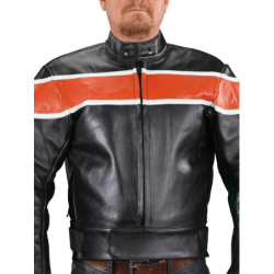 It's a proper, uncompromising Sportrider jacket, stripped-down to the basics but armor-ready, and with the adjustable suede waist. Plain front and sleeves, and a Harley-Davidson orange flat-track inlay around the chest and biceps. Very traditional, very protective.