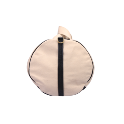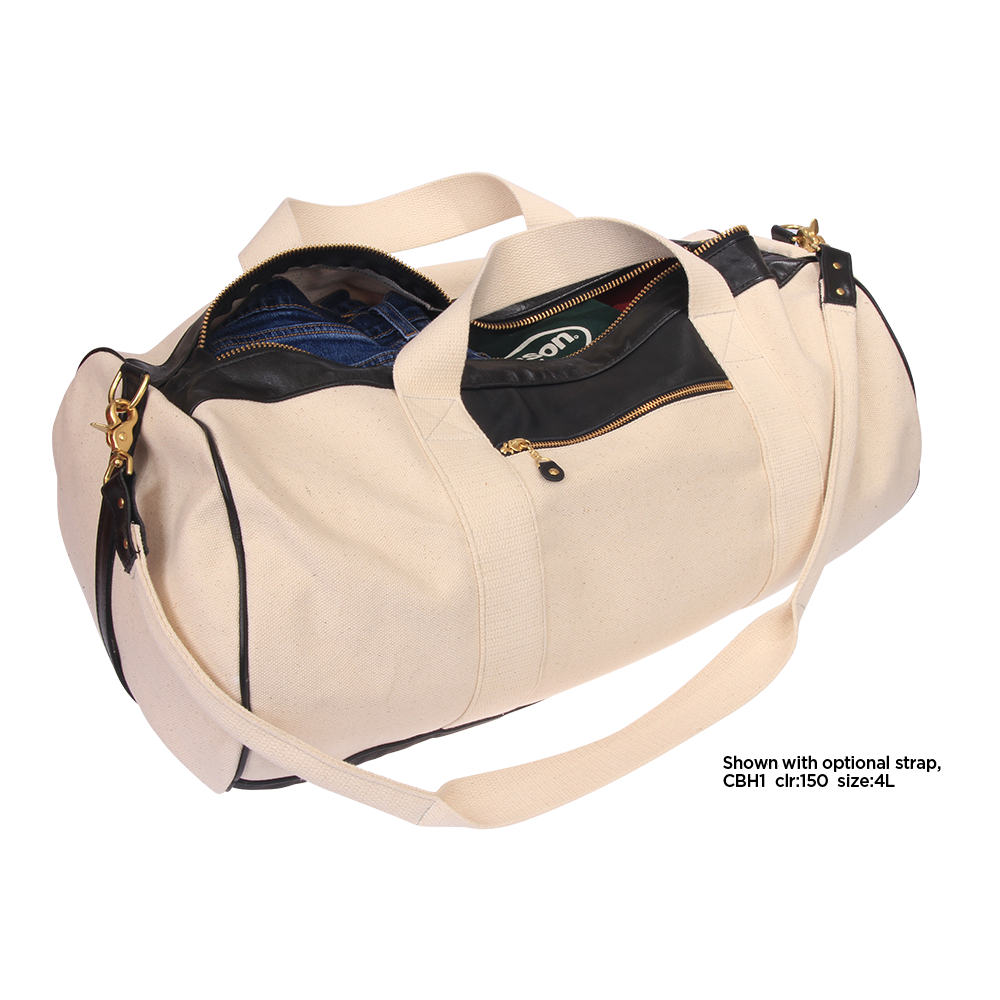 Each bag-end has a formed leather handle reinforced with Cordura for just the right "round" feel when used to lift and carry the bag. The top end of each handle has a solid brass D-ring for an optional over-the-shoulder carrying strap. There are 3 different styles of optional shoulder straps available, and each strap style is available in two lengths.