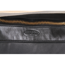 Along the top is the brass heavy duty zipper, set into contrasting leather panels and protected by dual "zip slider garages" at each end.