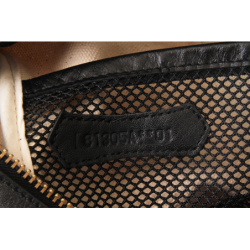 Along the inside back panel is a two compartment mesh pocket with a leather bead across the top. The Vanson Unit Number is embossed into a leather patch top stitched to the mesh pocket.
