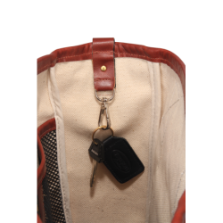 At each bag-end a D-ring tab is sewn and riveted with a solid brass D-ring for an optional over-the-shoulder carrying strap. Swivel-clips are attached to the inside end of each D-ring tab – no more "fishing for keys" with this design. There are 3 different styles of optional shoulder straps available, and each strap style is available in two lengths.
