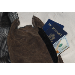 Islander Canvas Tote BagStandard equipment includes a large hidden "Basement Pocket" built into the bottom panel along the entire length of the bag. This pocket is camouflaged behind a full length velcro opening set into a water-resistant wax cotton floor making the pocket invisible to the casual observer. With a few things in the bag, on top of the "Basement Pocket" opening, your precious are hidden away from prying eyes and itchy fingers. Think of it as a Money-Belt Bag.