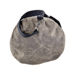 The shoulder strap is attached with two claw swivel clips and cut short so as to make carrying a loaded bag under the arm, close to the waist, and not hanging down knee length.