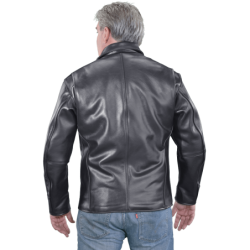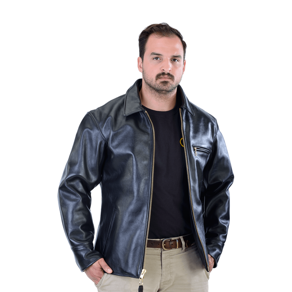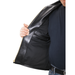The best updated classics are the ones that capture the spirit of the original while improving on it.One of our most popular understated fashion jackets, the VANSON DAKOTA is modeled after the vintage canvas work-coat, but in leather. True to its barn coat heritage with simple, functional lines, the DAKOTA has work-coat elegance with traditional double-needle topstitching details on the back and sleeves. Two lines of wide topstitching along the bottom hem secure the turn-up in a workmanlike manner. The classic collar, two exterior hand pockets, one zip-close chest pocket, two zip-close inside lining pockets, and solid brass hardware make the VANSON DAKOTA a fully functional/beautiful/cool traditional work-coat/ jacket.