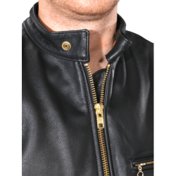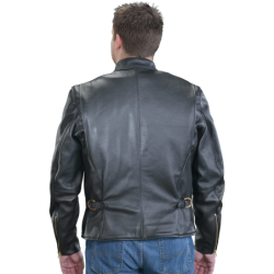 This is the quintessential classic leather motorcycle jacket, but also a nice jacket for just hanging out. Wear it with a T-shirt, wear it with a tie... either way, it travels well and has a comfortable relaxed fit. Solid brass buckles on the sides taper the waist for comfort and accentuate the broad-shouldered cut. A generous map pocket secured to a full leather inside facing, sleeves with low-bulk wrist-zipper gussets... this hand-built jacket exudes versatility. The Vanson Model B comes standard with a zip-in-zip-out pile liner and will also accept the Vanson Streamliner snap-in vest.