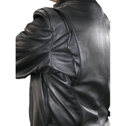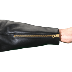 This is the quintessential classic leather motorcycle jacket, but also a nice jacket for just hanging out. Wear it with a T-shirt, wear it with a tie... either way, it travels well and has a comfortable relaxed fit. Solid brass buckles on the sides taper the waist for comfort and accentuate the broad-shouldered cut. A generous map pocket secured to a full leather inside facing, sleeves with low-bulk wrist-zipper gussets... this hand-built jacket exudes versatility. The Vanson Model B comes standard with a zip-in-zip-out pile liner and will also accept the Vanson Streamliner snap-in vest.