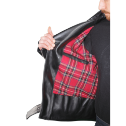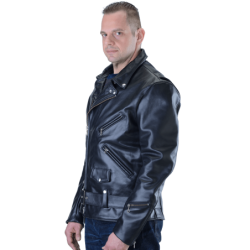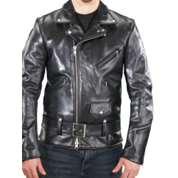 Unmistakably motorcycle in its looks, yet cut long and with a slim fit, this hip-length jacket is an international statement in leather. The Derby is a city touring coat.The one-piece back is a story all by itself. Cut from the heart of a skin, each Derby needs one entire side of leather just to get the back cut. In today's world, this is conspicuous consumption with a capital "C". And in this case, the end result does justify the means.