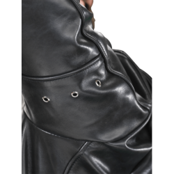 The always cool look of a "biker" jacket is enhanced by the polished two-way zipper, big belt, and traditional overlapping snap-down collar and lapels. Open the bottom of the two-way front zipper for a more comfortable ride. Close up the zippers and collar lapels to slice through winter weather in the comfort of warmth.