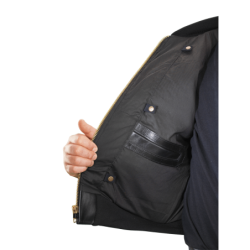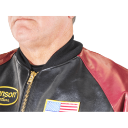 The Vanson RACE TEAM JACKET features a full-cut leather body with wool knit collar, cuffs and waistband, sports racing sponsor patches, and an embroidered Vanson oval logo on the front and left sleeve. It's made from beefy competition-weight cowhide, black on the front and back with red leather sleeves and pocket trim, two hand pockets, two inside pockets, a comfortable rayon lining, and a solid brass front-close zipper. Our RACE TEAM JACKET is also set up to receive the insulated, reversible Vanson Streamliner with its removable sleeves and lace-adjustable sides. For a great look with great comfort imagine yourself wearing a Vanson RACE TEAM JACKET.