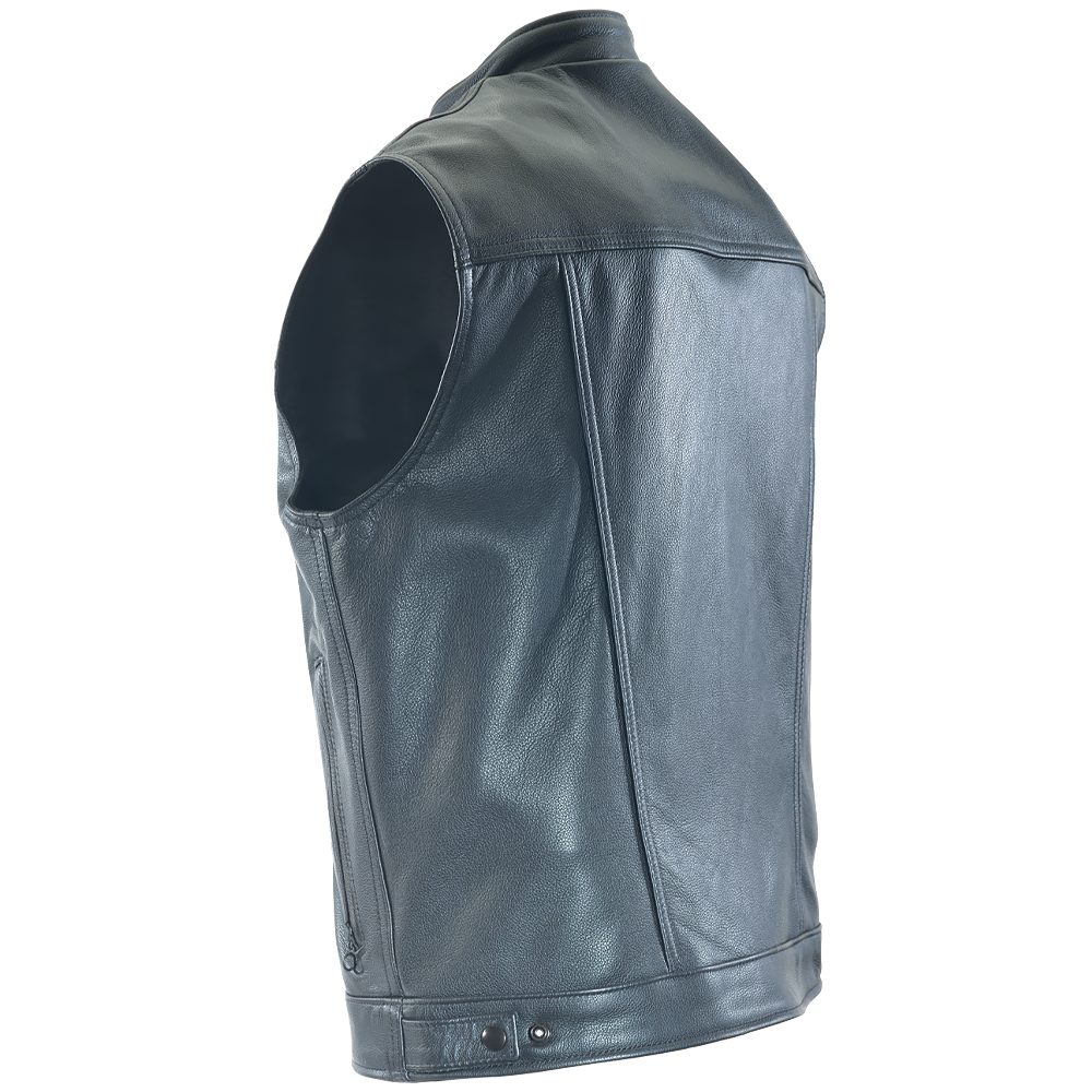 The Vanson PERSUADER is a finely-crafted leather vest with a traditional snap front that is comfortable to wear and easy to ride with.