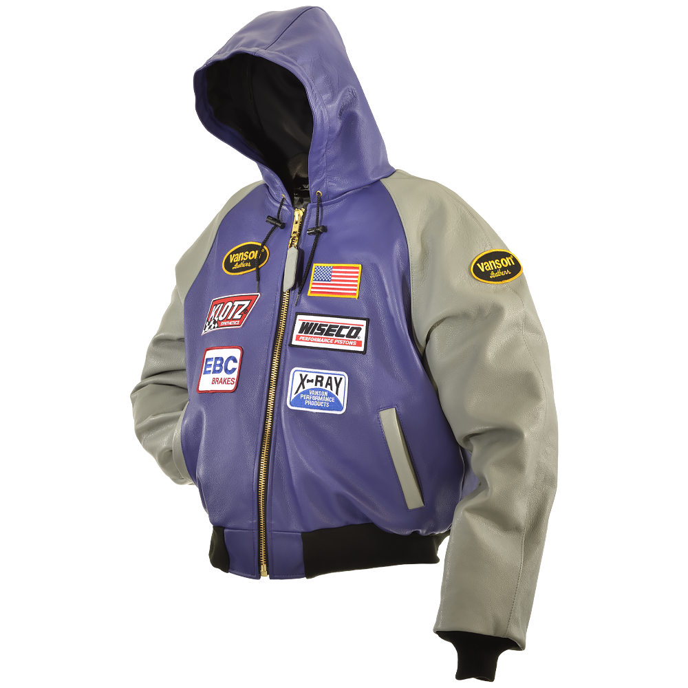 The Vanson Leather Hooded Competition Team Jacket (Model TJPH PURP)