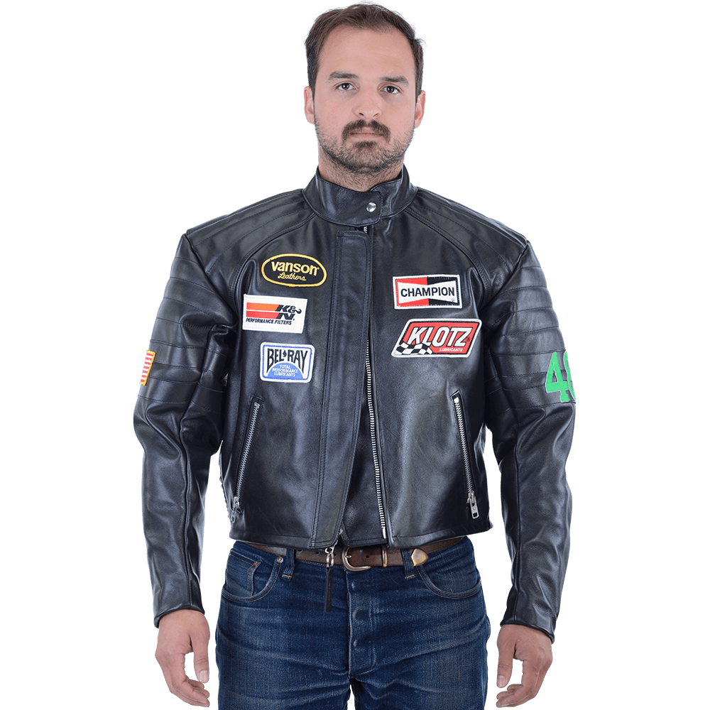 Underneath all the brand names and logos you have a classic, solid, competition-weight Speedway-style jacket, with two outside zipped pockets and one inside leather patch pocket. Protection as well as style.