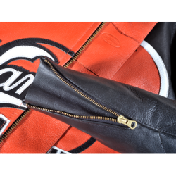Along the way the Speedway Jacket has become an American Original with a non-conformist thrust. Every Race Team develops a signature color and logo, true to this Race Team custom several different limited editions have been produced. The “Genesis N.Y.C.” version is perhaps the most well known.