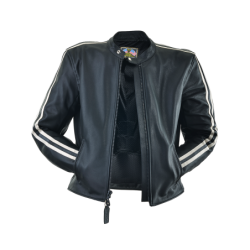 BLACK FIRENZE JACKET WITH BONE LEATHER SLEEVE STRIPES
