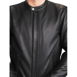BLACK FIRENZE JACKET WITH BONE LEATHER SLEEVE STRIPES