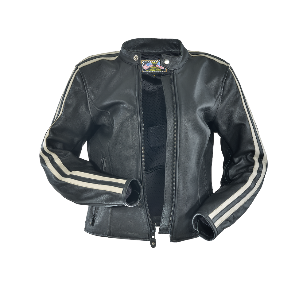 Vanson's leather Drifter Jacket has the classic center front zipper and two zipped hand pockets. Subtle-yet-substantial body armor uses our patented Floating Armor System which allows the rider to adjust protection level as needed for maximum comfort. Ventilation is via Vanson's patented sleeve vents that maintain the diameter of the sleeves, with the jacket keeping its shape whether open or closed. Rear exit vents ensure smooth airflow. The Vanson Drifter will accept our insulated, reversible Streamliner. For a sleek look, comfort and safety, the Vanson Drifter will be the jacket you grab as you head out.