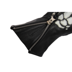 In 1985 - a Bad Year as you already know - we introduced our Rocket Gloves. In 1990 - arguably an Even Worse Year, with the Royal New Zealand Navy finally abolishing the daily rum ration and Tim Berners-Lee putting up the first web-server - we added the anatomical bones motif to the Rocket Gloves to complement our Vanson Bone Suits and Jackets. We decided to call them X-RAY Gloves. You might not want to use them in a surgical procedure, but they are still pretty darn realistic.Leaving aside for a moment the Bone motif, Vanson X-RAY Gloves are elegantly old-school, with a long, integrated, zippered cuff and a one-piece hand, meaning the top continues into the palm of the hand along the index-finger side, in one piece of leather. An extravagant construction - demanding large pieces of carefully prepared and matched leather for a perfect pair of gloves - but with the advantages of a greatly superior smooth round forefinger fit and a slim, fitted wrist.