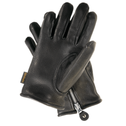 The back of the hand has a zipper with a race-style under-guard. A deerskin tab with a polished nickel-plated double-headed rivet makes it easy to grasp the zipper pull. Classic design, handmade quality. Years of performance.