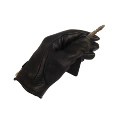 Black Deerskin - tanned for glovemaking. This leather is very rich soft and strong. All our deerskin is specified at 1.0 mm. This leather has only a light-level coat of wax and resin to protect it. This is part of what creates the the special feel of deerskin. It will benefit from regular applications of leather balm to reduce the effects of the UV in sunlight over time.