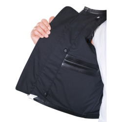 STREAMLINER COMPATIBLE--- There are two possible attachments for the STREAMLINER. One type is a snap-in - the other type is zip-in. The zip-in type has two zippers along the center front facings of a jacket. ---- THE STREAMLINER is a universal insulated removeable liner. It has removable sleeves and lace-adjustable sides. It is reversible - with a hi-visibility safety yellow interior. Insulation is a special Tyvek material Reflective strips cross the interior - so when reversed the garment is both hi-visibility yellow and reflective. Download the Fit Chart