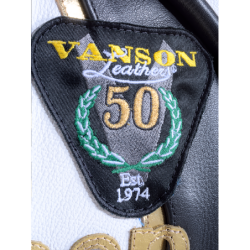 VAN50 is the Special Anniversary Edition color scheme. White Gold Black colors are mixed in color-blocks and inlay designs to create a signature look for the Vanson 50th. year celebration.