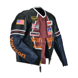 DISCLAIMER--- Vanson Motorcycle Riding Jackets and Pants Disclaimer----- Vansons Motorcycle Riding Jackets and Pants Disclaimer - Motorcycle sports are inherently dangerous and involve the risk of serious injury or death. Riders are using these products at their own risk with full knowledge of the hazards and risks associated with their activities. Motorcycle Riding Jackets and Pants cannot offer complete protection from injury or death to riders. Motorcycle Riding Jackets and Pants cannot protect areas of the body that are not covered and offer no protection against injuries involving forces other than impact. CAUTION: Body Protectors (Vanson GP F.A.S. armor and CE approved armor) must fit properly and be securely fastened. Motorcycle Riding Jacket and Pants components that are damaged should be destroyed and replaced. The protective properties of Racing suits may be compromised by prior impact- age- use and other substances. Always follow the manufacturers recommendations before applying cleaning agents- paints- or adhesives. Vanson Leathers disclaims any responsibility for injuries or death incurred while wearing any of the Motorcycle Riding Jackets and Pants offered for sale. Reprentations regarding testing results- equipment ratings- product specifications- ASTM and/or SEI standards- and the adequecy of all such standards and designations are made solely by the products manufacturer. Vanson Leathers makes no representations express or implied regarding the fitness of these products protect riders from injury or death.