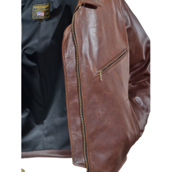 Ronald Reagan was President, and the country was feeling confident again, comfortable in its abilities, not afraid of standing for an ideal, moving ahead in what now seems to be a simpler world. These sentiments are captured in the design elements of the Vanson Enfield. They include: Casual in the use of a shirt-style collar. Comfortable in the use of open-top, fully leather-lined hand pockets. Confident in the use of large panels with a one-piece back that takes careful hide selection and cutting. The Enfield is a modern classic-casual leather jacket. The Enfield is an expression of American confidence and sureness in an unsteady, wobbly world.