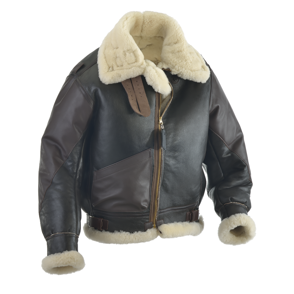 The A-1, A-2 and G-1 all worked well with their light liners in the tight confines of the fighter planes of the period, but when worn in a bomber that flew above 20,000 feet with outside temperatures down to -50°F a warmer jacket was needed. Introduced in the mid-1930s the B-3 designed specifically for the high-altitude bombers personnel’s needs. A bulky jacket designed of sheepskin and lined with heavy-duty sheep fur helped protect the bomber crews who operated in unpressurized cabins, enduring freezing temperatures at altitudes of up to 25,000 feet.