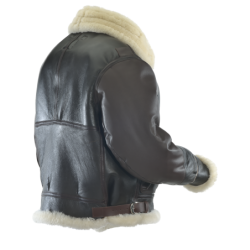 The A-1, A-2 and G-1 all worked well with their light liners in the tight confines of the fighter planes of the period, but when worn in a bomber that flew above 20,000 feet with outside temperatures down to -50°F a warmer jacket was needed. Introduced in the mid-1930s the B-3 designed specifically for the high-altitude bombers personnel’s needs. A bulky jacket designed of sheepskin and lined with heavy-duty sheep fur helped protect the bomber crews who operated in unpressurized cabins, enduring freezing temperatures at altitudes of up to 25,000 feet.