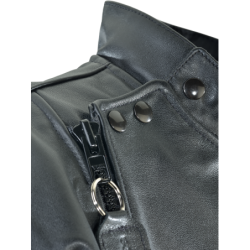 ZIRCON BLACK - Beautiful smooth grain 1.2 mm ( 3 oz. ) leather with a polished look and feel. Only the very best grade of skins can make this leather. This leather breaks in easily and as it does the look and feel develop and become unique to the garment. This is a sophisticated and elegant medium weight leather.