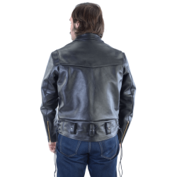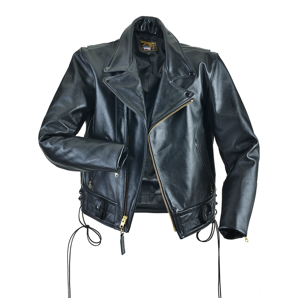 Vanson modified the traditional CHPs jacket to incorporate a concealed carry (CCW) leather lined gun pocket. Made from heavy-duty competition-weight cowhide with two zip-close exterior pockets, one inside-lining wallet pocket, a snap-close concealed carry leather-lined gun pocket, snap-close belt loops, zip-close sleeves, rayon lining, solid brass hardware, and a swing-action back for unrestricted movement. This is one of our top-of-the-line premium-grade leather jackets with the unparalleled quality and craftsmanship that can only be a Vanson. Simple lines, functional details, long-lasting durability inside and out. And you don't even have to be a cop to own one.