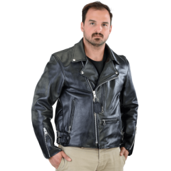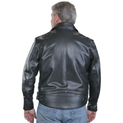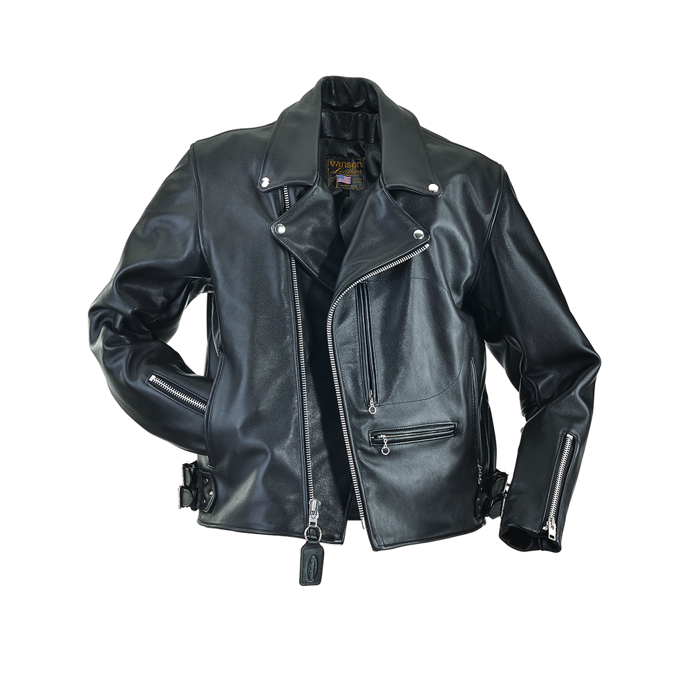 This was the crucible that created the Dominator, a version of the American "Brando" jacket. From the twin side-buckles to the front wallet-pocket, this jacket is Vanson's interpretation of a classic English Rocker jacket. Close your eyes, and you can see this classic jacket on a BSA Golden Flash, or Super Rocket, or Triumph Bonneville, or...a Norton Dominator.