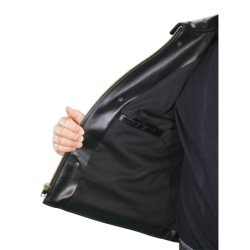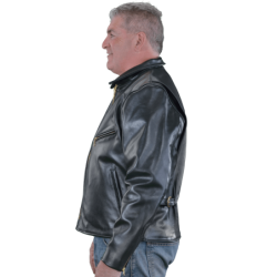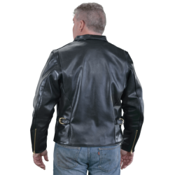Ronald Reagan was President, and the country was feeling confident again, comfortable in its abilities, not afraid of standing for an ideal, moving ahead in what now seems to be a simpler world. These sentiments are captured in the design elements of the Vanson Enfield. They include: Casual in the use of a shirt-style collar. Comfortable in the use of open-top, fully leather-lined hand pockets. Confident in the use of large panels with a one-piece back that takes careful hide selection and cutting. The Enfield is a modern classic-casual leather jacket. The Enfield is an expression of American confidence and sureness in an unsteady, wobbly world.