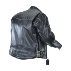 The distinctive quilting on the shoulder and elbow areas reflects the heritage of this design from the Pacific Northwest. Police departments in Washington and Oregon added this feature for extra protection to the original California Highway Patrol design favored in Sacramento. We have also offer an optional concealed carry (CCW) leather lined gun pocket to the Chopper for either a right or left hand draw.