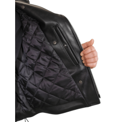 We had the Vanson Highwayman, but we wanted something a little cleaner, less traditional but still a Hard Core Biker / Cafe Racer Jacket - this unique quilt lined jacket with a concealed carry (CCW) leather lined gun pocket was sketched out in South Boston after a cold and wet ride home. We knew we wanted to be able to fully close out the wind so we added a throat latch to the under-collar. Flip up the collar and button the throat latch to keep the cold out... or snap the collar and throat latch down to enjoy the wind. Then we added the reinforced kidney protection and lace-up side panels for comfort during long rides. We kept the deep and secure inside wallet pocket, and the leather-lined gun pocket. 100% Hard Core through and through.