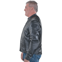Its called Hard Core for two reasons one, for how tough it is and two, for the attitude it projects. Made of rugged competition-weight leather with substantial chrome hardware, the Vanson Hard Core Leather Motorcycle Jacket is a Vanson original - not to be confused with wannabe motorcycle jackets.We had the Vanson Highwayman, but we wanted something a little cleaner, less traditional but still a Hard Core Biker / Cafe Racer Jacket. This unique jacket was sketched out in a South Boston diner after a late night run when it was about to get plenty cold and wet on the ride home. We knew we wanted to be able to fully close out the wind so we added a throat latch to the under-collar. Flip up the collar and button the throat latch to keep the cold out... or snap the collar and throat latch down to enjoy the wind. Then we added the reinforced kidney protection and lace-up side panels for comfort during long rides. We kept the deep and secure inside wallet pocket, and the concealed carry (CCW) leather-lined gun pocket. 100% Hard Core through and through.