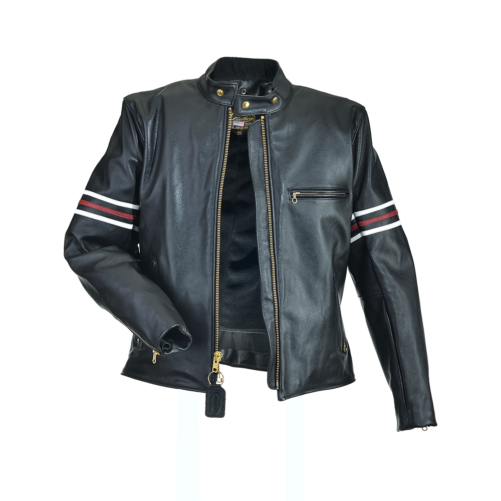 Vanson B leather jacket with striped band on upper sleeve