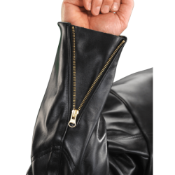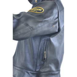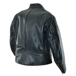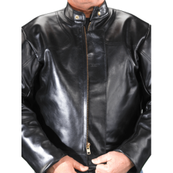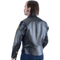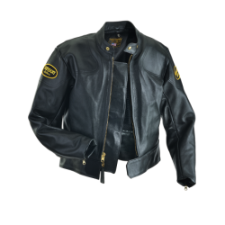 The Vanson Manx started out as the top half of a racing suit. Back in the day, club racing was ride on Monday what you raced on Sunday, and that is how the Manx was born.Given its origins, the Manx is first and foremost sleek. No front pockets (two, with zippers are in the lining), trim fitted shape with curved sleeves ending with gusseted zippers, rear exhaust vents, windflap with competition license holder and double leather at the elbows, forearms and shoulders. But as part of a two-piece suit, the jacket would be too short to wear by itself "¦ so we added a shaped waistband to seal out the wind and give more protection in a crash. We added a tab and two snaps to the collar so it closes securely but needn't flap when open. The bottom closes with a hefty Velcro tab; starting the zipper at the top of this lets the jacket flare out slightly, which is more comfortable for the rider.