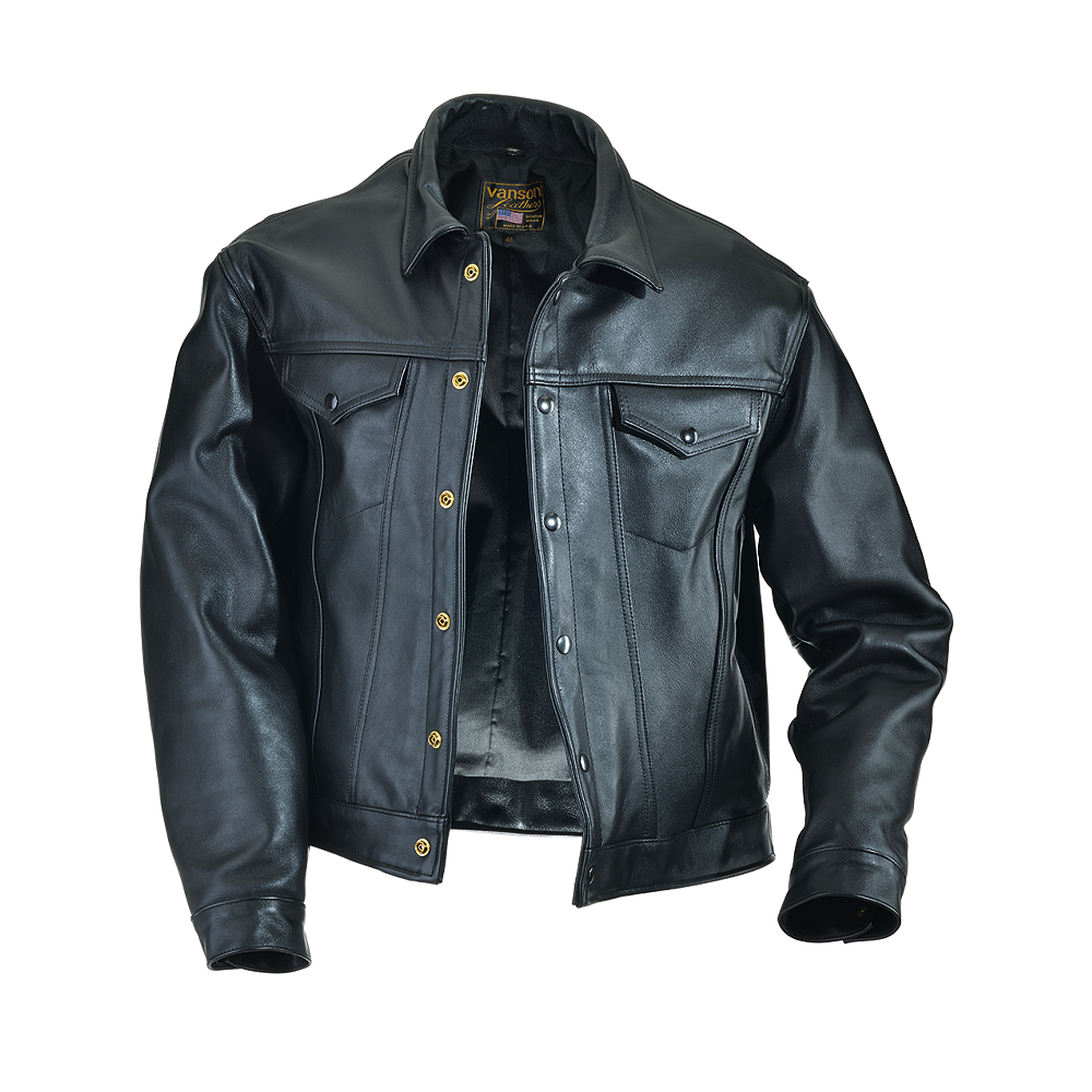 Cut and stitched using carefully selected hides, the MAVERICK is both casual and fashionable with that noticeable handmade Vanson execution. Faithful to the original Western design, the two top pockets with inset flaps and the side tabs are snap set. Double needle, topstitch details and an inside lining pocket make this jacket a highly functional, retro jacket in the classic Western style.