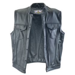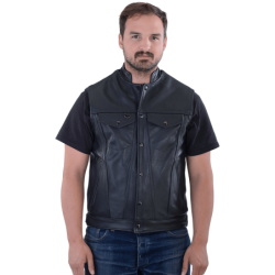 The Vanson PERSUADER is a finely-crafted leather vest with a traditional snap front that is comfortable to wear and easy to ride with.